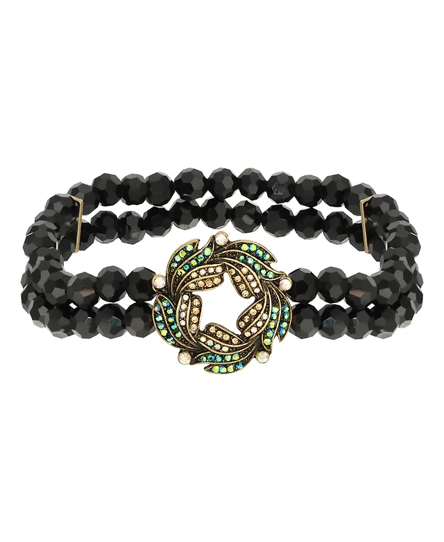 2028 Blue Iridescent Aurora Borealis Glass Stone Wreath and Jet Bead Bracelet