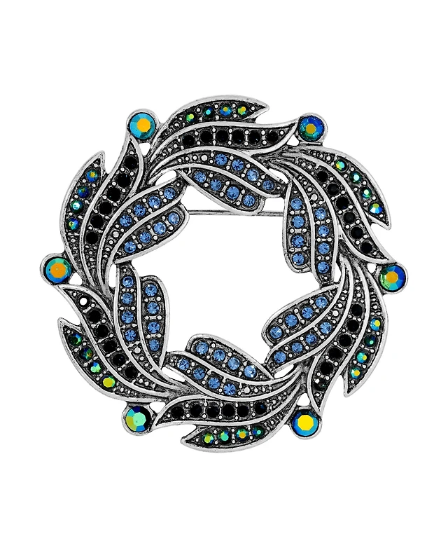 2028 Silver-Tone Ab Glass Stone Wreath Pin