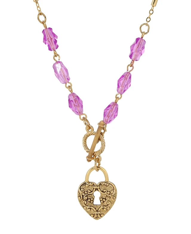 2028 Purple Bead Filigree Heart Pendant Necklace