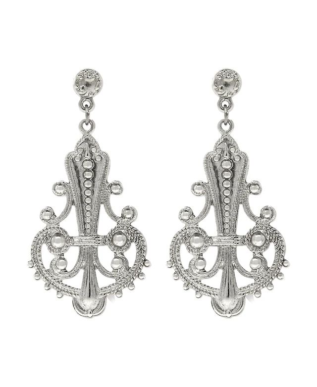 2028 Silver-Tone Oval Filigree Earrings