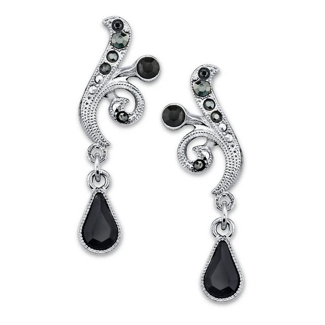 2028 Silver-Tone Black and Hematite Color Crystal Vine Drop Earrings
