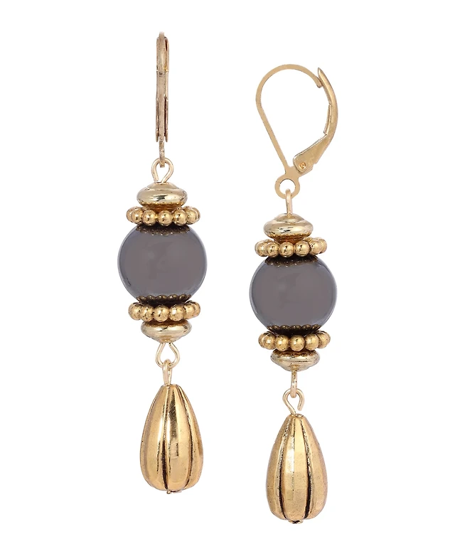 2028 Semi-Precious Fluted Bead Lever Back Earrings