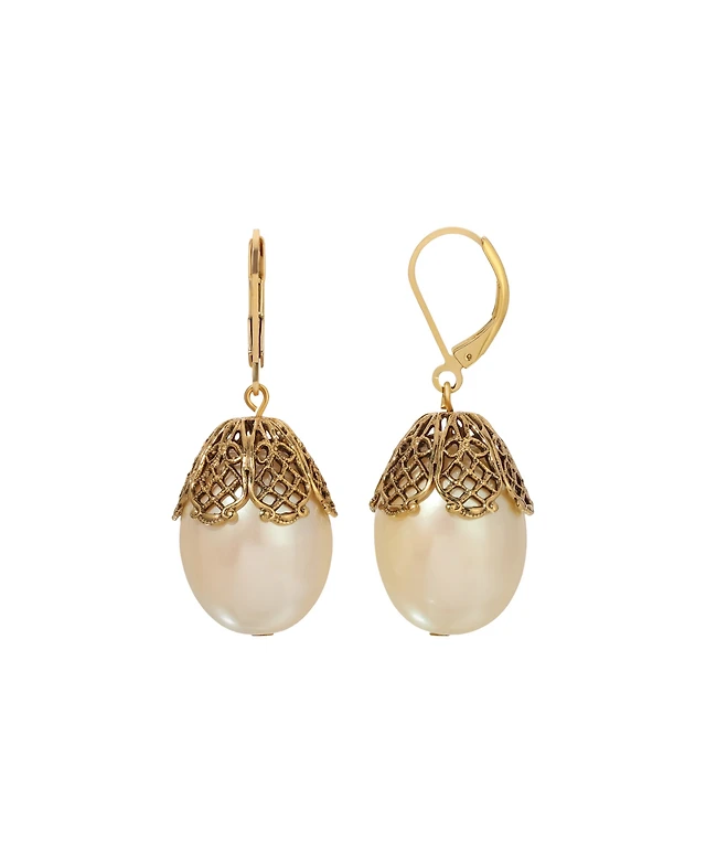 2028 Faux Cultivated Pearl Crystal Accent Double Flower Drop Earrings