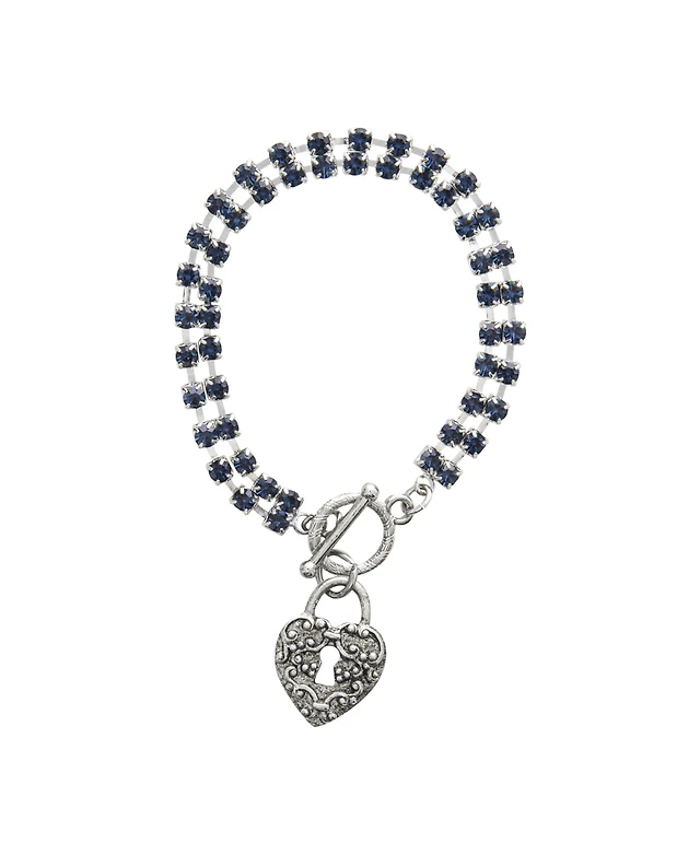 2028 Crystal Blue Toggle Heart Charm Bracelet