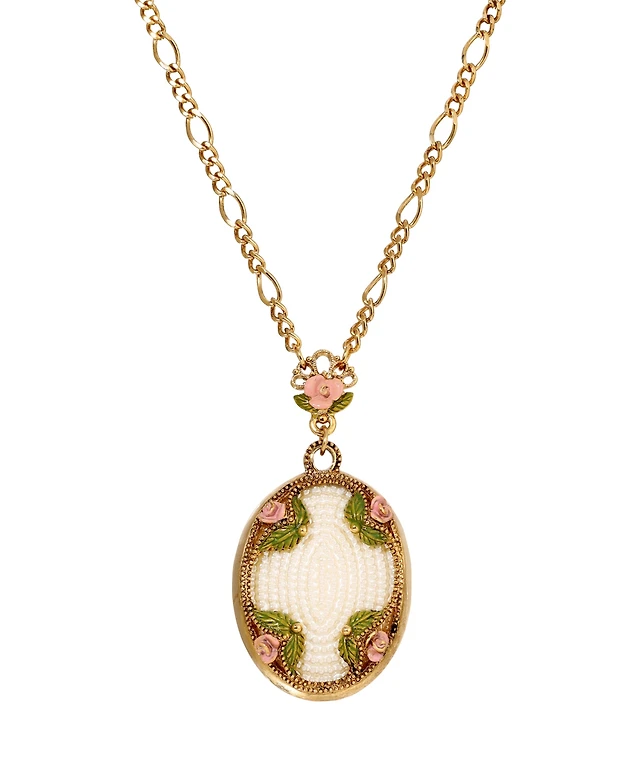 2028 Imitation Pearl Pink Enamel Flower Collar Necklace