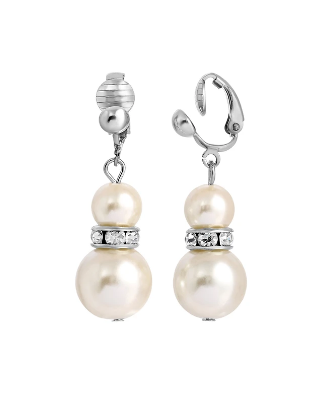 2028 Graduated Faux Imitation Pearl and Crystal Clip Earrings