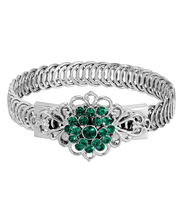 2028 Silver-Tone Emerald Green Flower Overlay Belt Bracelet