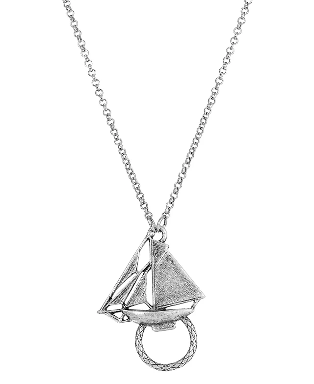 2028 Silver-Tone Tube Shaped Designer Chain Necklace