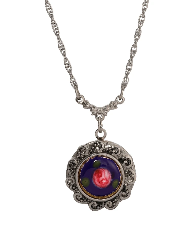 2028 Floral Enamel Round Locket Necklace