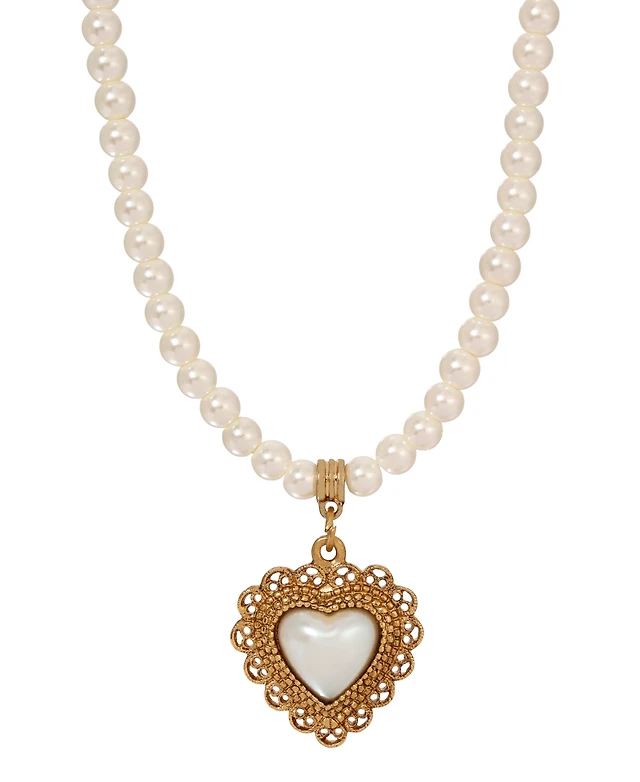 2028 Faux Cultivated Pearl Heart Pendant Necklace