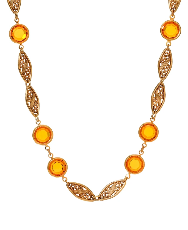 2028 Topaz Crystal Filigree Station Necklace