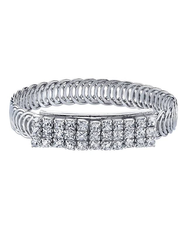2028 Silver-Tone Clear Crystal Rhinestone Slim Belt Bracelet