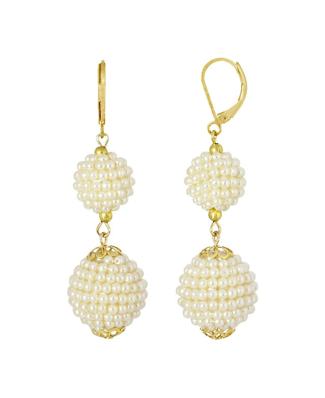 2028 Gold-Tone Double Seeded Imitation Pearl Drop Ball Earrings