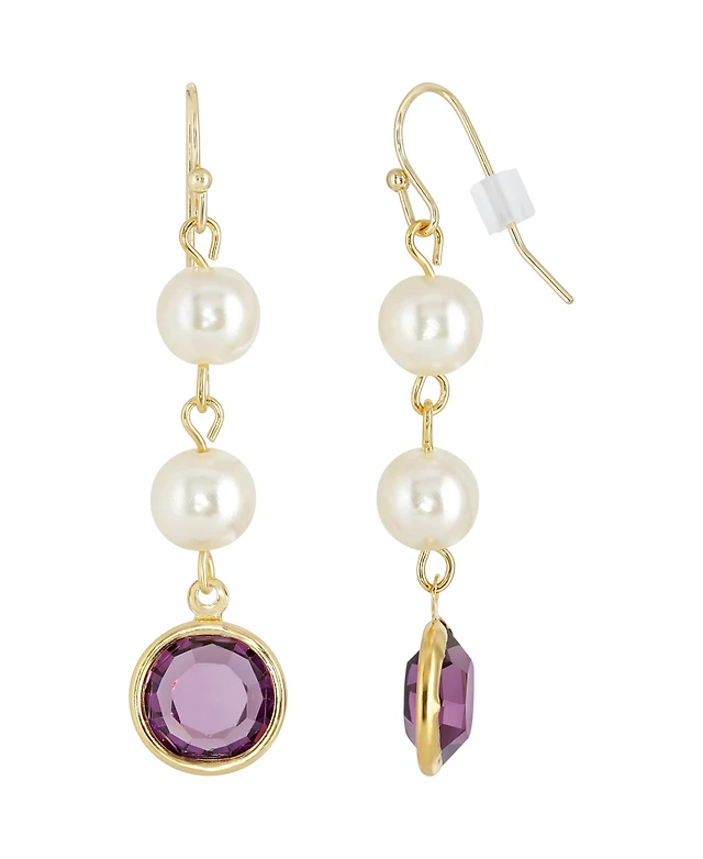 2028 Gold-Tone Imitation Pearl with Purple Channels Drop Earring