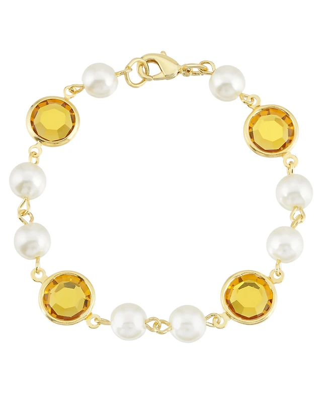 2028 Gold-Tone Imitation Pearl with Yellow Channels Link Bracelet