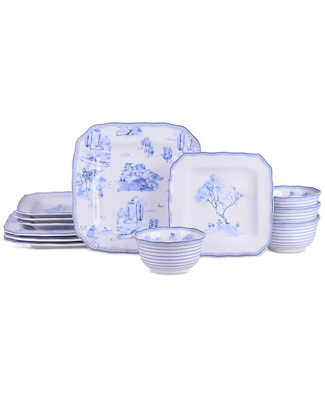 222 Fifth Scenic Toile Blue Porcelain 12 Pc. Dinnerware Set, Service for 4