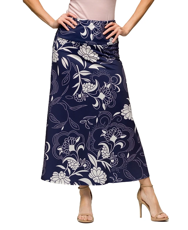 24seven Comfort Apparel Plus Print Fold Over Waist Maxi Skirt