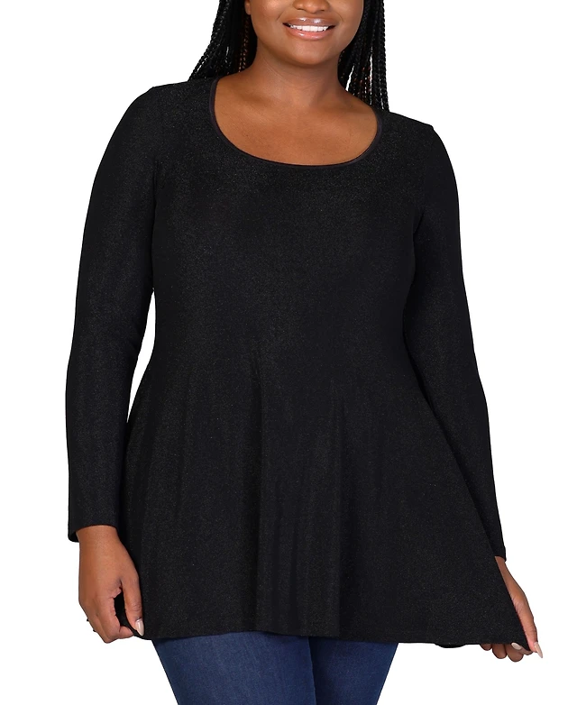 24seven Comfort Apparel Plus Scoop Neck Shimmery Tunic Top