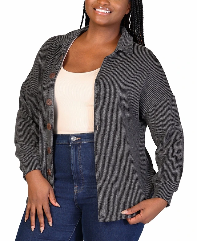 24seven Comfort Apparel Plus Rib Button Up Shirt Jacket