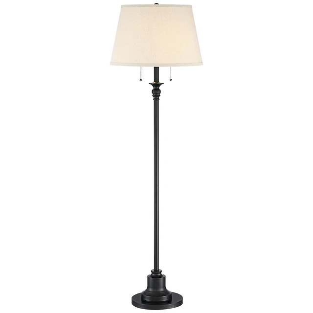 360 Lighting Carter Traditional 3 Piece Floor Table Lamp Set Bronze Metal Oatmeal Drum Shade for Bedroom Living Room Bedside Nightstand Office House