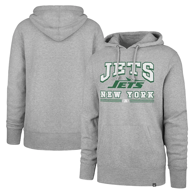 Men's '47 Gray New York Jets Legacy Packed House Headline Pullover Hoodie
