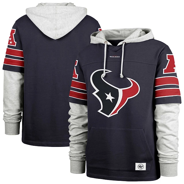 Men's '47 Navy Houston Texans Double Header Blitz Cornerback Pullover Hoodie