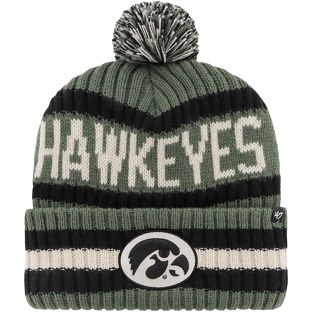Men's '47 Green Iowa Hawkeyes OHT Military Appreciation Bering Cuffed Knit Hat with Pom