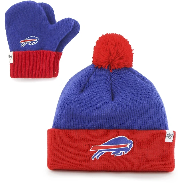 Toddler '47 Royal/Red Buffalo Bills Bam Bam Cuffed Knit Hat with Pom and Mittens Set