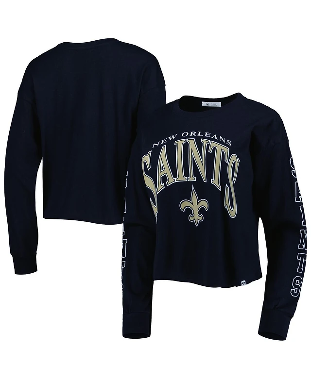 Women's '47 Brand Black New Orleans Saints Skyler Parkway Cropped Long Sleeve T-shirt