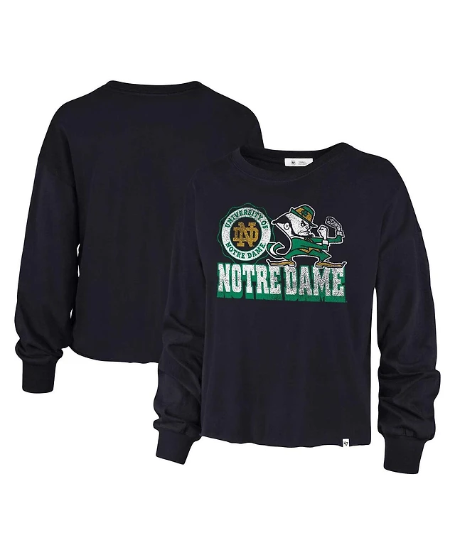Women's '47 Brand Navy Distressed Notre Dame Fighting Irish Bottom Line Parkway Long Sleeve T-shirt