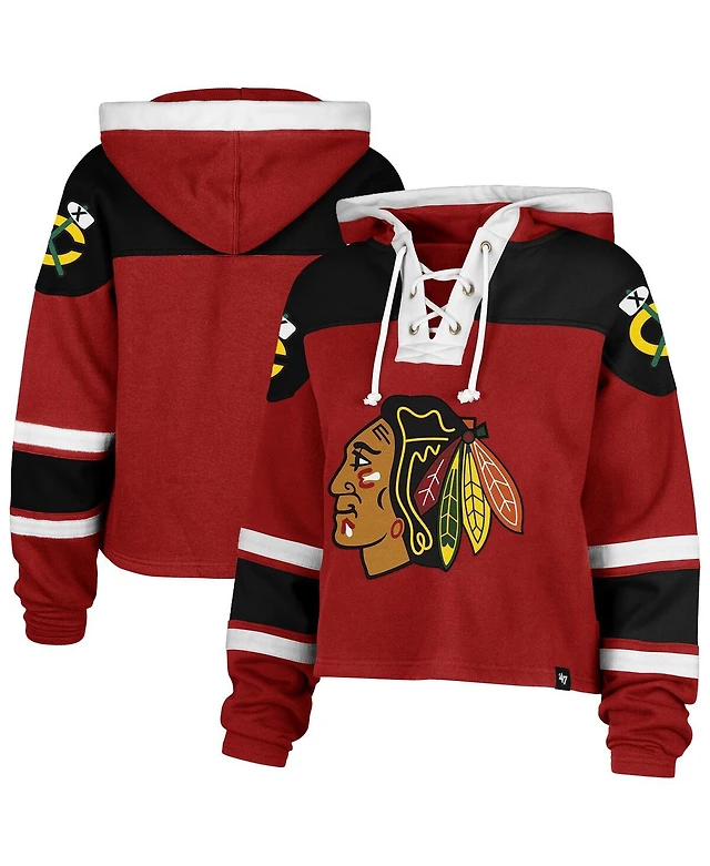 '47 Brand Women's Red Chicago Blackhawks Cropped Superior Lacer Pullover Hoodie