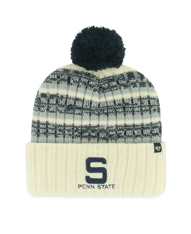 '47 Brand Men's Cream Penn State Nittany Lions Vintage Tavern Cuffed with Pom Knit Hat
