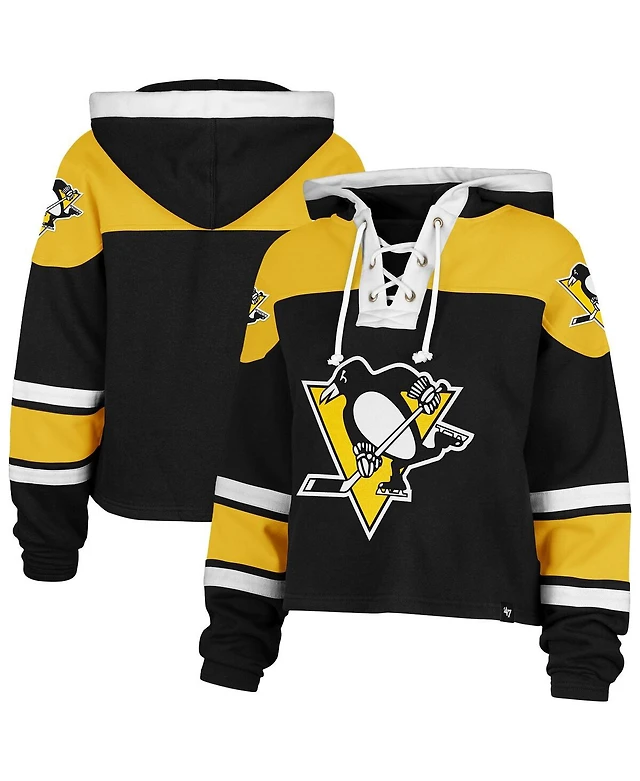 '47 Brand Women's Black Pittsburgh Penguins Cropped Superior Lacer Pullover Hoodie