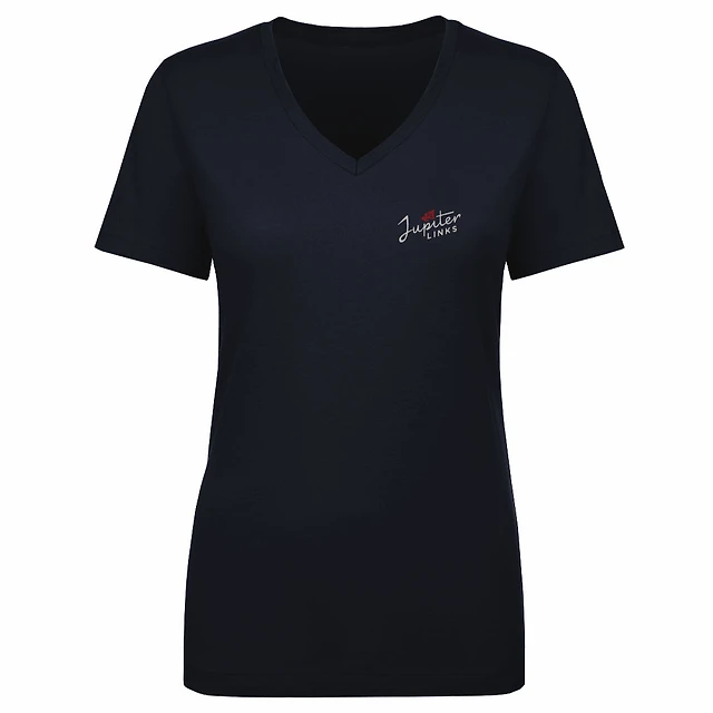 Women's 500 Level Navy Jupiter Links Golf Club TGL Team Primary Wordmark V-Neck T-Shirt