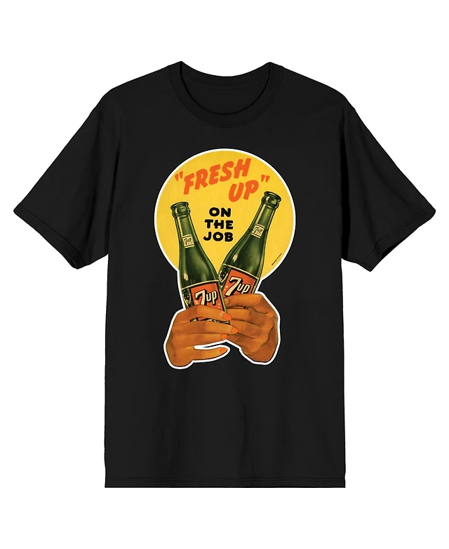7UP Men's Fresh Up On The Job 2 Green Bottles Black Short Sleeve Adult T-Shirt-3XL