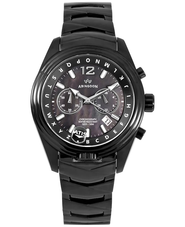 Abingdon Co. Katherine Women's Chronograph Black Ion Plated Stainless Steel Bracelet Watch 40mm