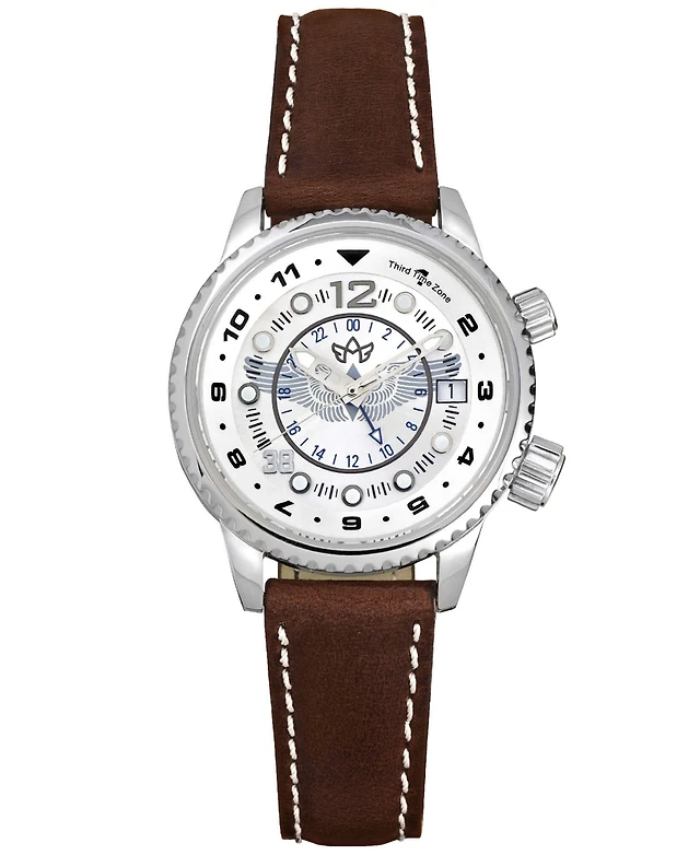 Abingdon Co. Women's Amelia Gmt Multifunctional Genuine White Calf Leather Strap Watch 40mm