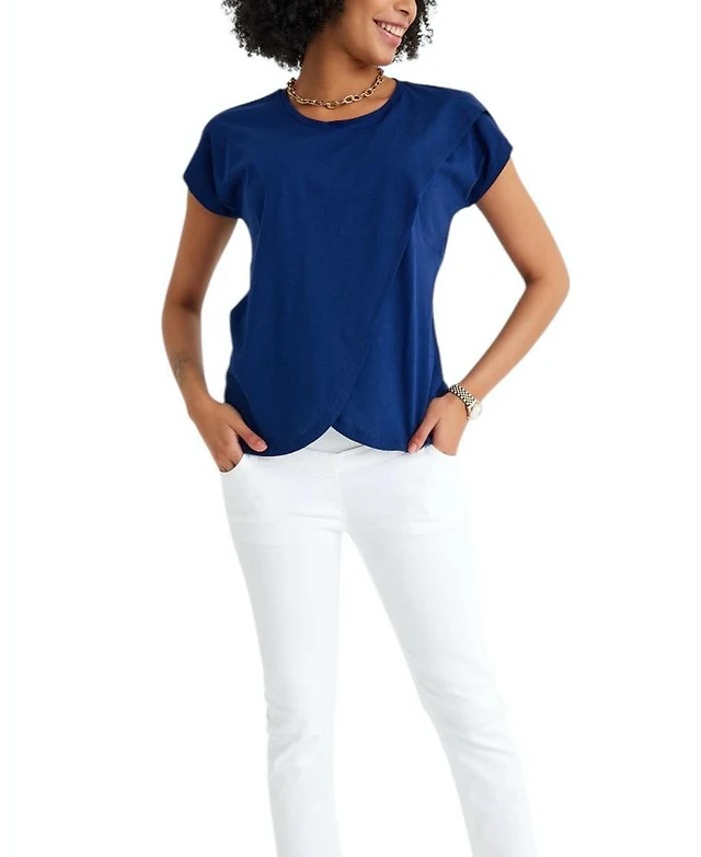 Handy Crossover Short Sleeve Cotton Maternity/Nursing Top
