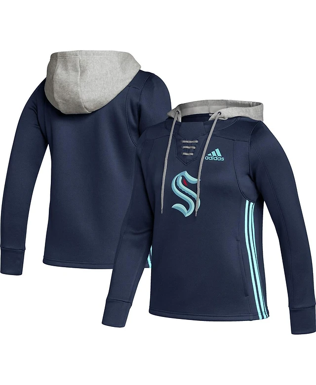 Women's adidas Deep Sea Blue Seattle Kraken Skate Lace Team Pullover Hoodie