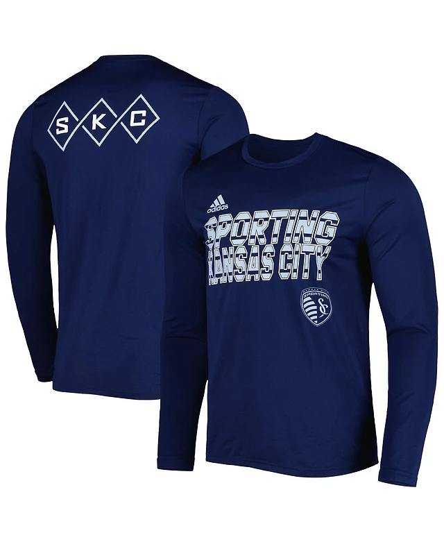 Men's adidas Navy Sporting Kansas City Jersey Hook Aeroready Long Sleeve T-shirt