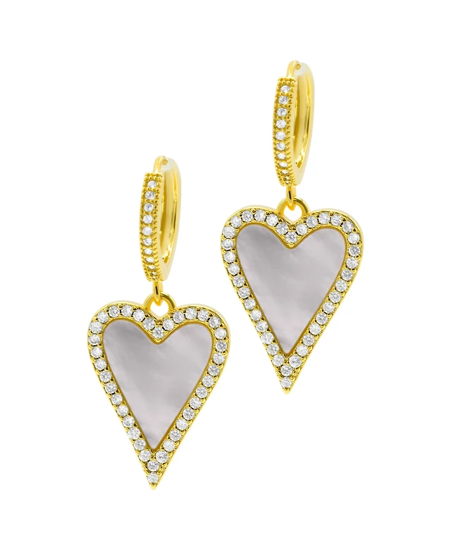 Adornia 14K Gold-Plated White Mother-of-Pearl Crystal Halo Heart Drop Huggie Earrings