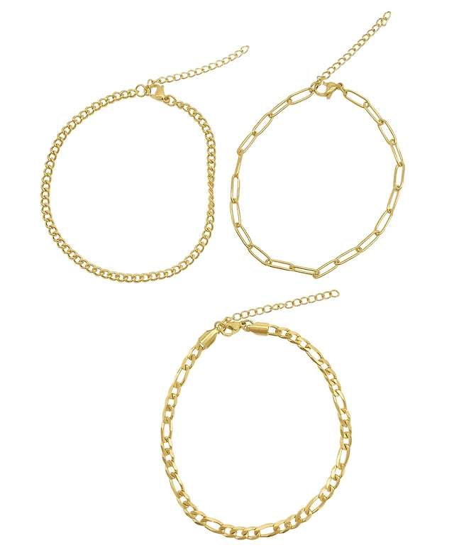 Adornia Curb Chain, Paper Clip Chain, and Figaro Chain Anklet Set