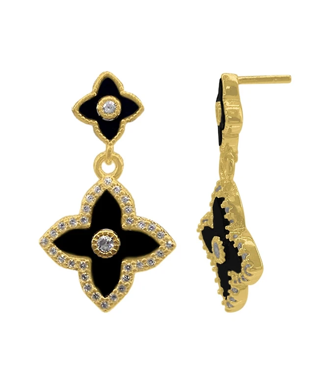 Adornia 14K Gold Plated Black Clover Drop Earrings