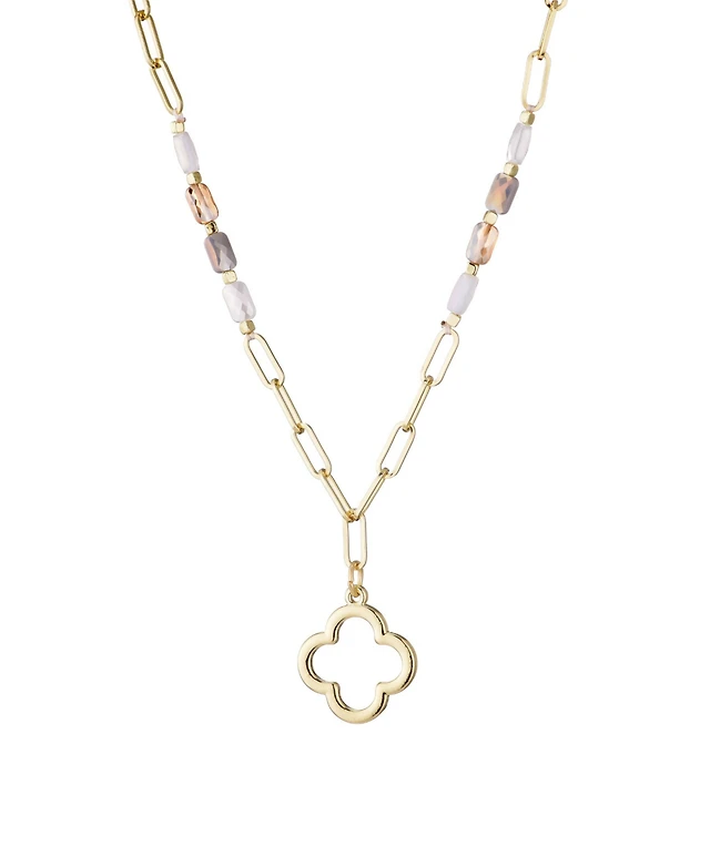 Adornia Mixed Bead and Chain Clover Outline Pendant Necklace
