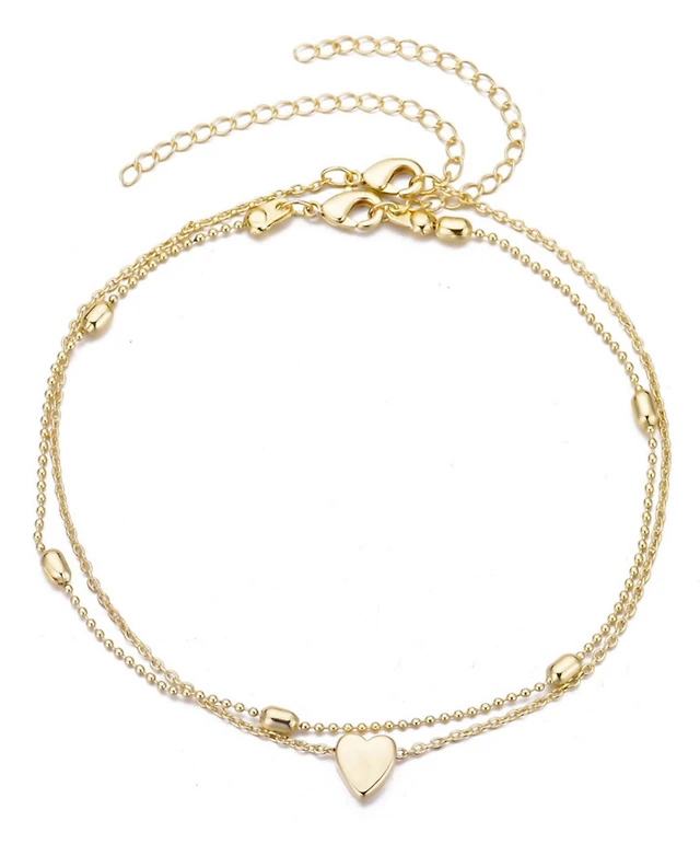 Adornia Gold Plated Heart Adjustable Anklet Set
