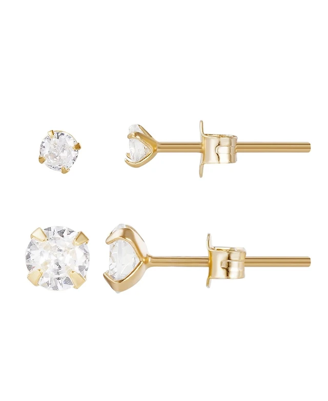 Adornia Gold Vermeil Sterling Silver Solitaire Stud Earrings Set
