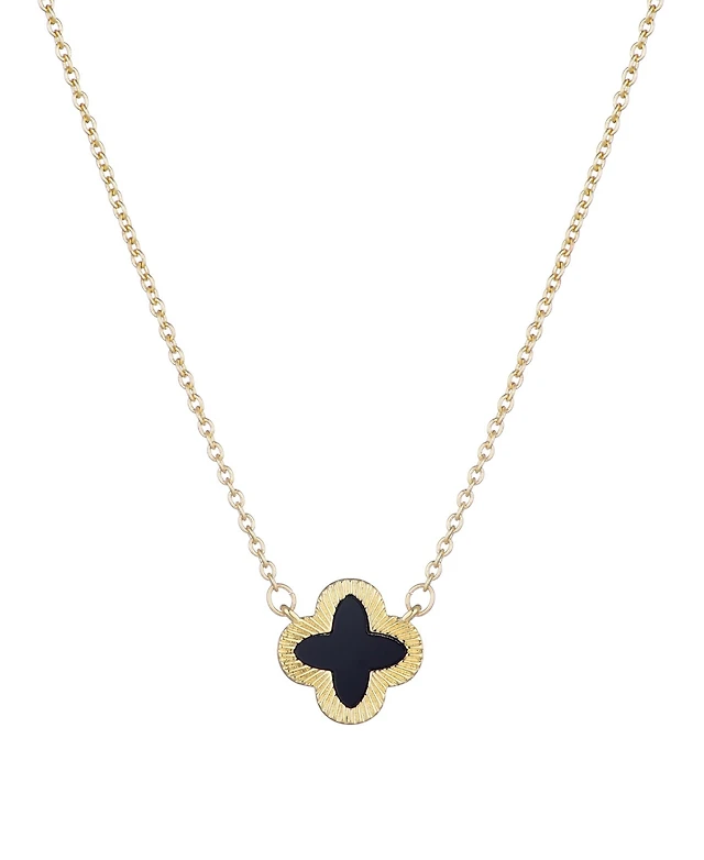 Adornia Gold Fluted Edge Black Clover Pendant Necklace