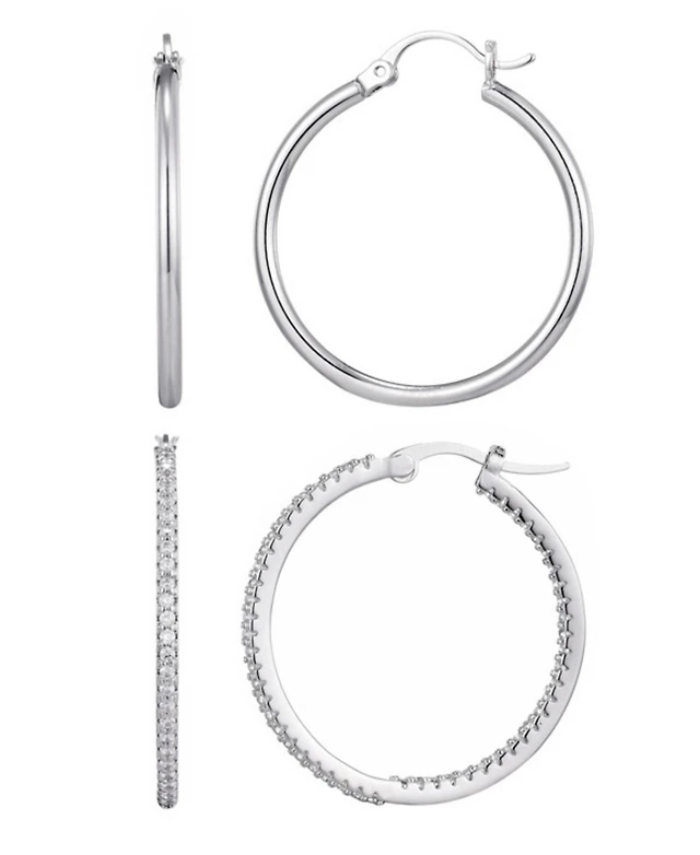 Adornia Silver Cz Infinity and Plain Hoop Earrings Set