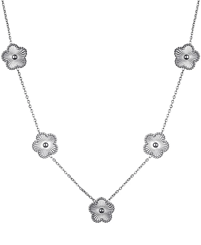 Adornia Tarnish Resistant Silver 5-Leaf Clover Station Necklace