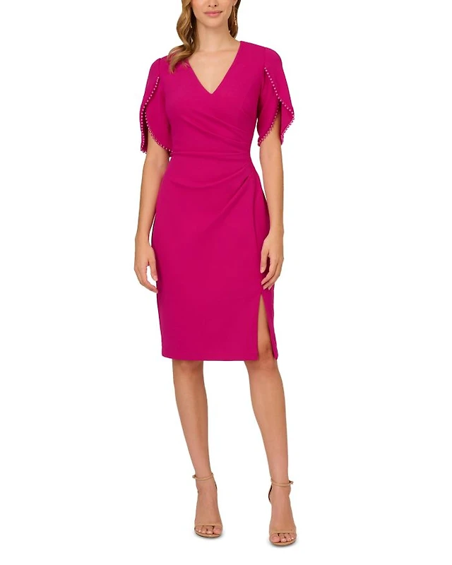 Adrianna Papell Women's Crepe Tiered-Sleeve Sheath Dress